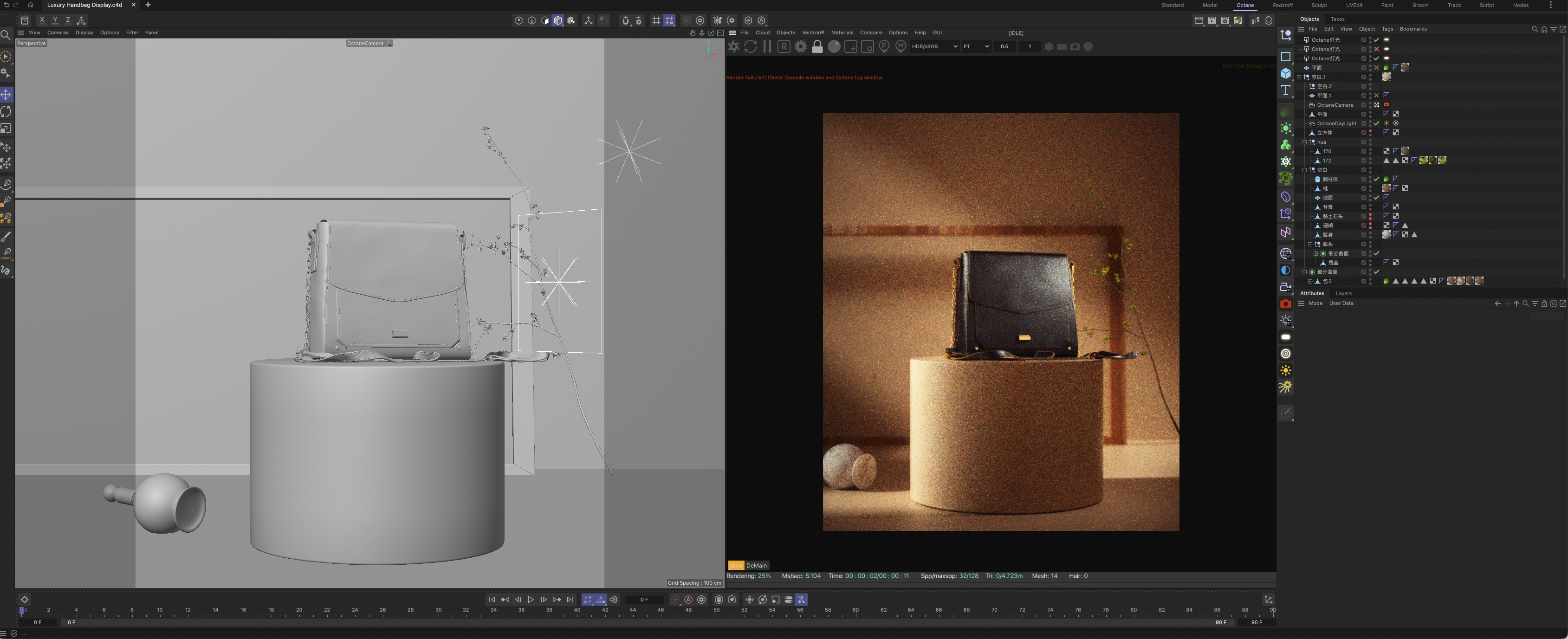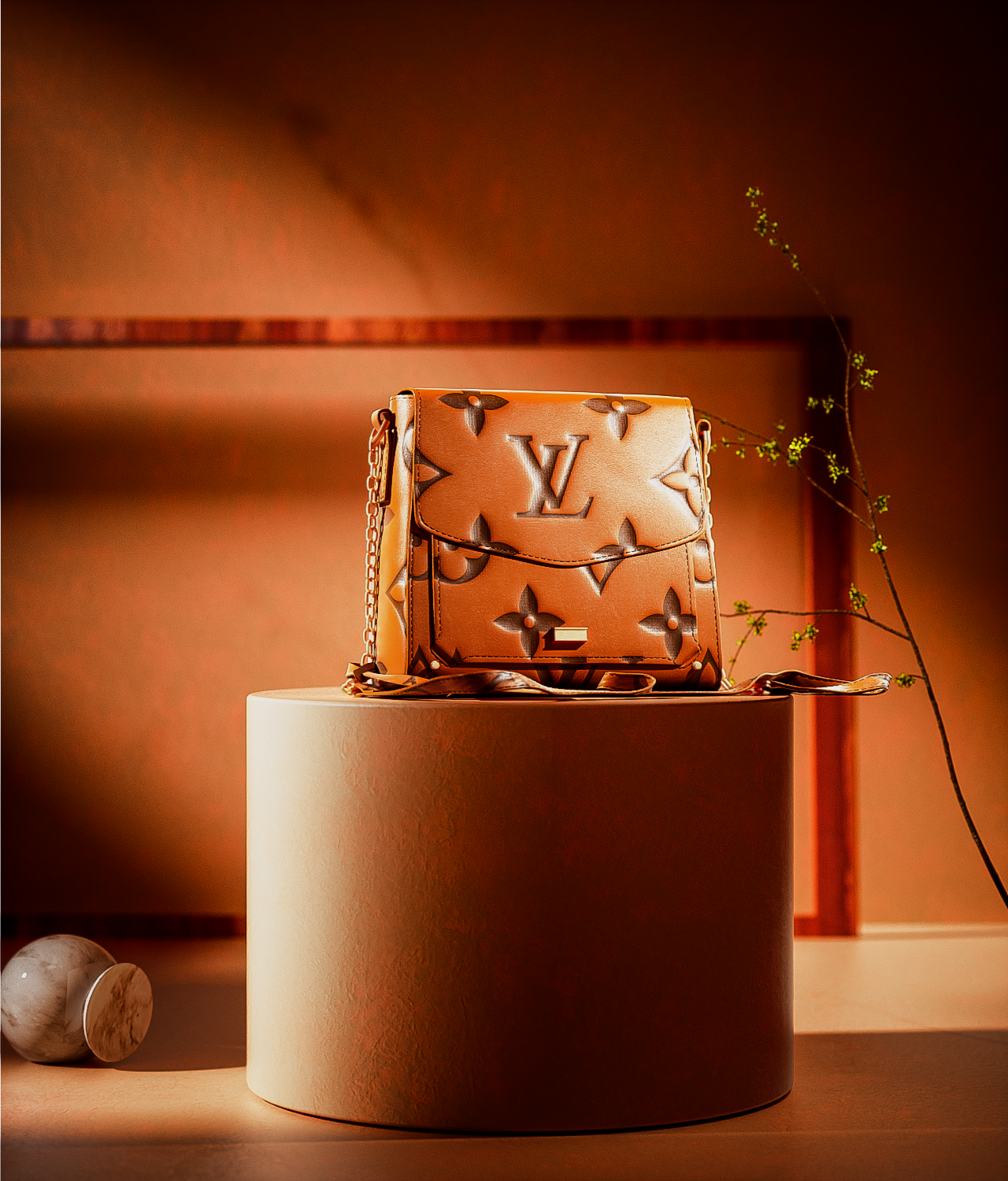 C4D+Octane | Luxury Handbag Display with Marble & Botanical Accents